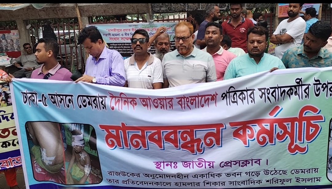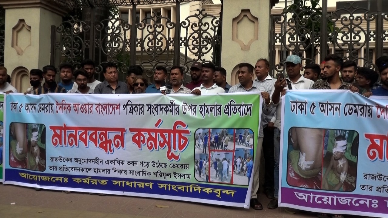 সাংবাদিকের উপর সন্ত্রাসীদের হামলার প্রতিবাদে রাজউক’ এর সামনে মানববন্ধ