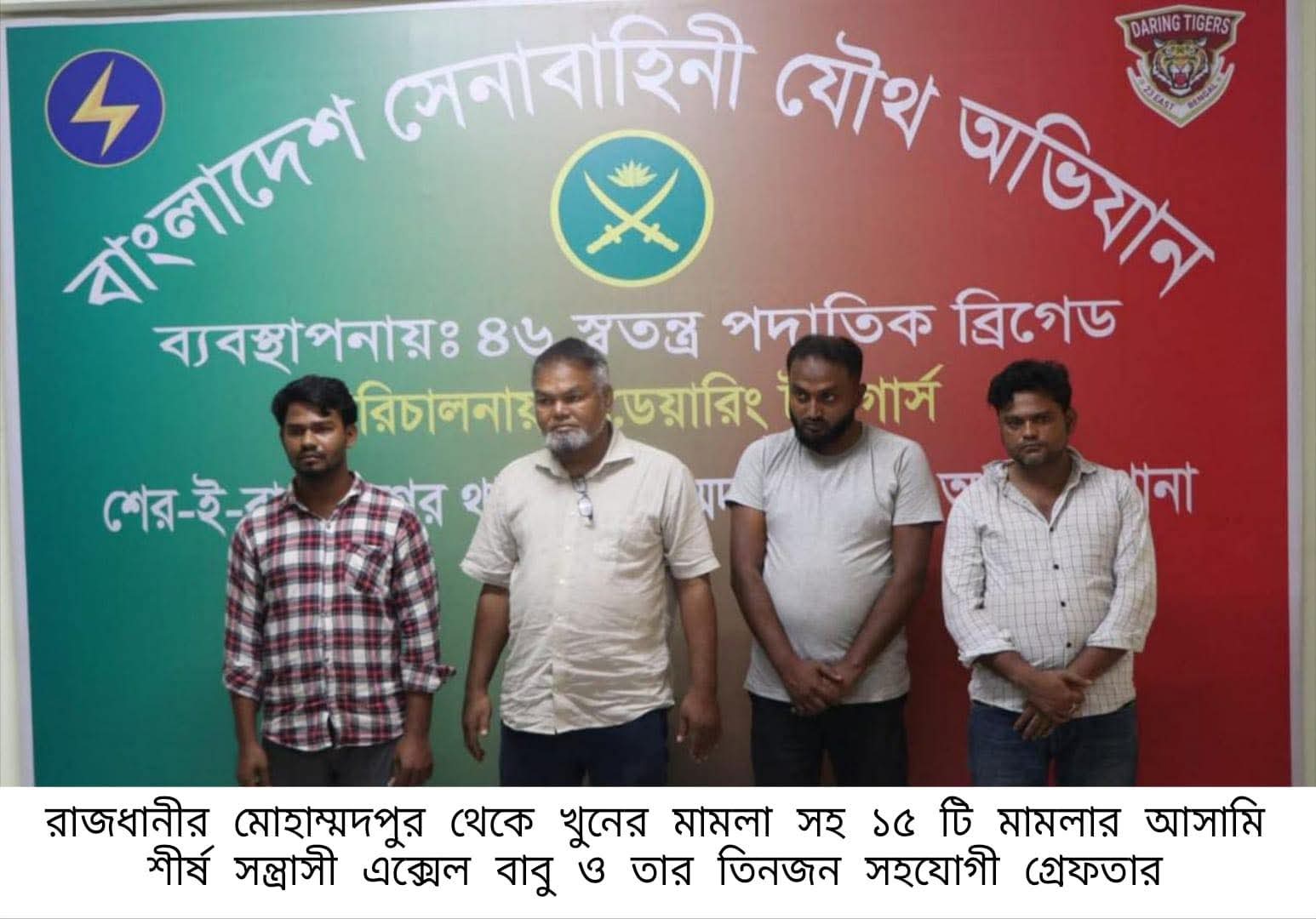 সেনাবাহিনীর অভিযানে শীর্ষ সন্ত্রাসী এক্সেল বাবুসহ গ্রেফতার ৪