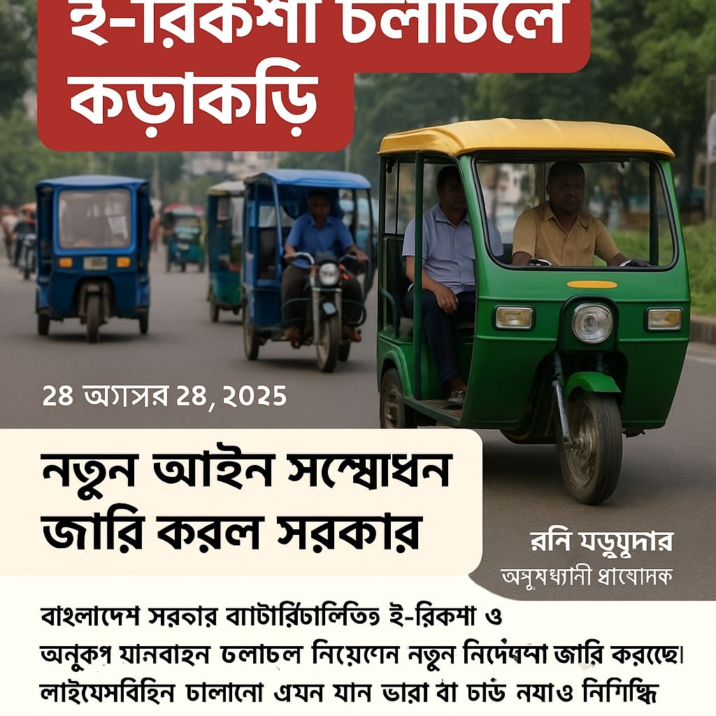 *ই-রিকশা চলাচলে কড়াকড়ি: নতুন আইন সংশোধন জারি করল সরকার*