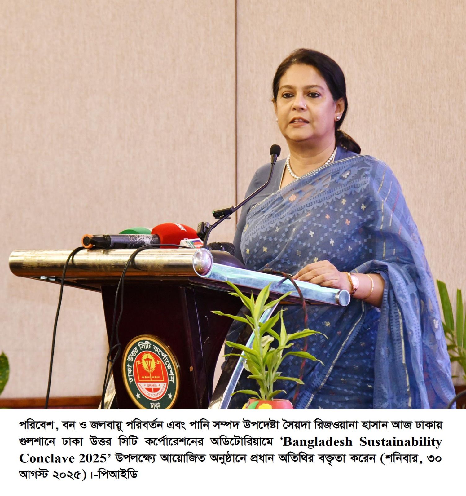 **ঢাকা, ১৫ ভাদ্র (৩০ আগস্ট ২০২৫)** – পরিবেশ, বন ও জলবায়ু পরিবর্তন এবং পানি সম্পদ উপদেষ্টা **সৈয়দা রিজওয়ানা হাসান** বলেছেন,